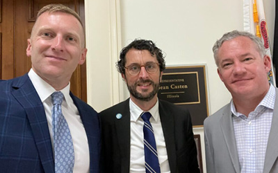 Noah Tabor and Matthew Illian of UCF alongside Rev. Michael Neuroth of the UCC Public Policy and Advocacy Office