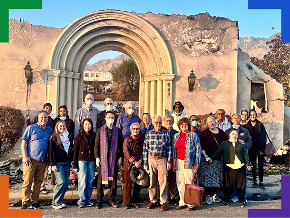When the Eaton Fire swept through the Los Angeles area in January 2025, Altadena Community Church experienced profound losses. The historic 78-year-old Spanish Colonial Revival was destroyed, and many congregation members lost their homes. Throughout conversations with the church’s co-moderators and the Southern California-Nevada Conference Minister, the Rev. Rachael Pryor, it was evident that relationships became essential sources of strength for Altadena Community Church.